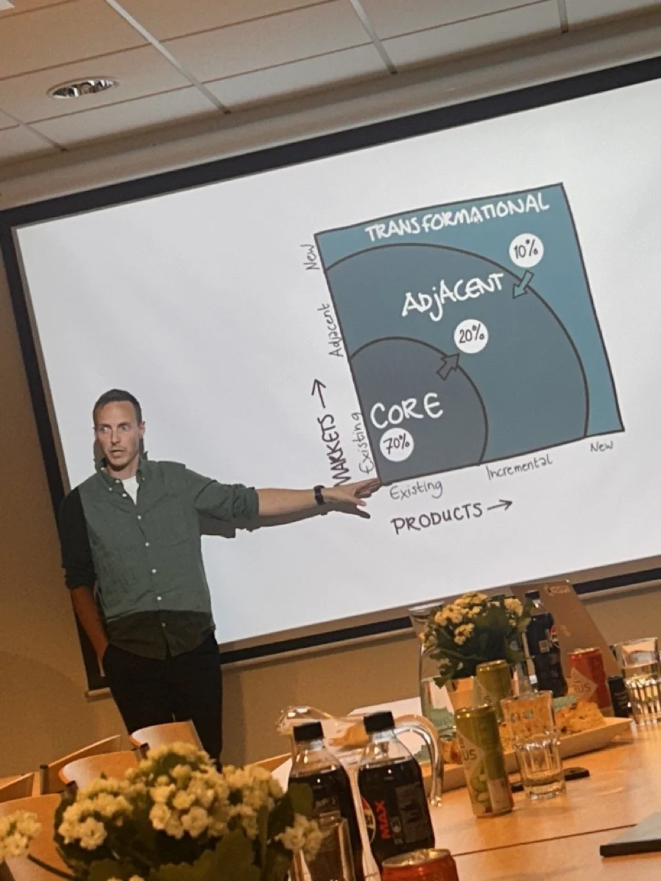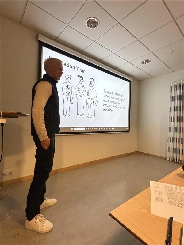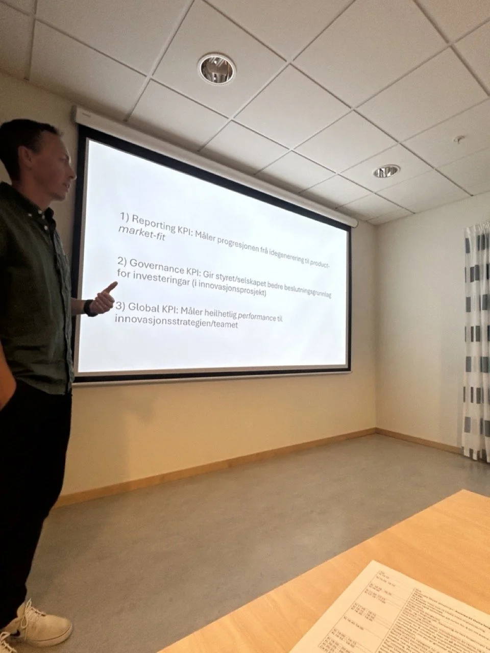 På første samling innleia Tore Frimanslund frå Høgskulen på Vestlandet (HVL) om innovasjon i bedrifter og den krevjande balansen mellom kjerneverksemd og utviklingsprosjekt.